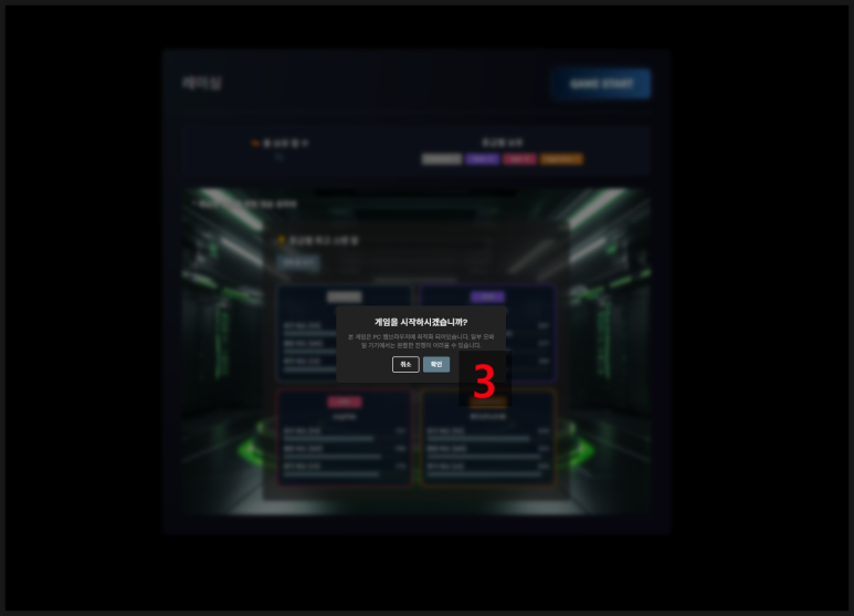⑷ 게임 시작 확인 문자가 뜨면 "확인"을 클릭합니다