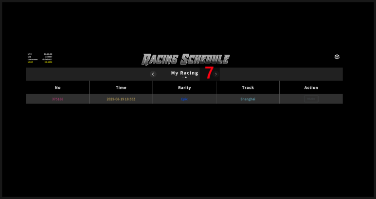 왼쪽부터 경기 번호 ▶ 경기 시간 ▶ nft 경주마 종류 ▶ Shanghai 경기장 ▶ 다시 보기 순으로 나옵니다.