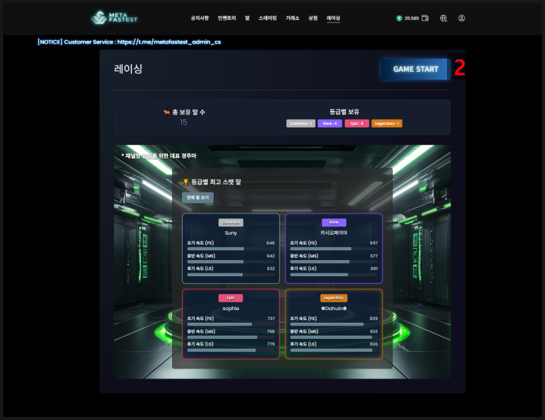 나의 NFT 경주마 레이싱.. 경기 번호 찾기
