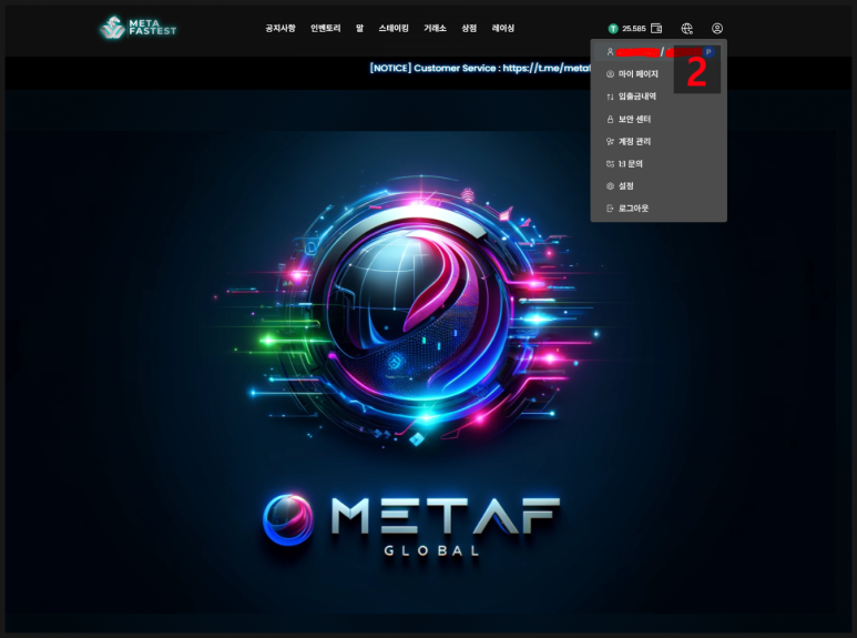 ⑴ 플랫폼 로그인하신 뒤 가운데 제일 위 "레이싱"을 클릭합니다.
